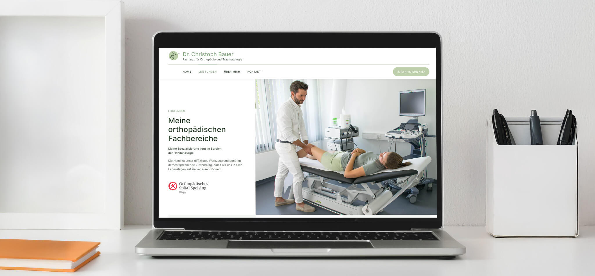 Es gab bereits eine bestehende Website für die Wahlarztordination von Dr. Bauer. Wir haben diese mit den Leistungs-Landingpages zu den Themen Karpaltunnelsyndrom, Handgelenksganglion und Rhizarthrose und einer entsprechenden Leistungsüberblicks-Seite ergänzt.